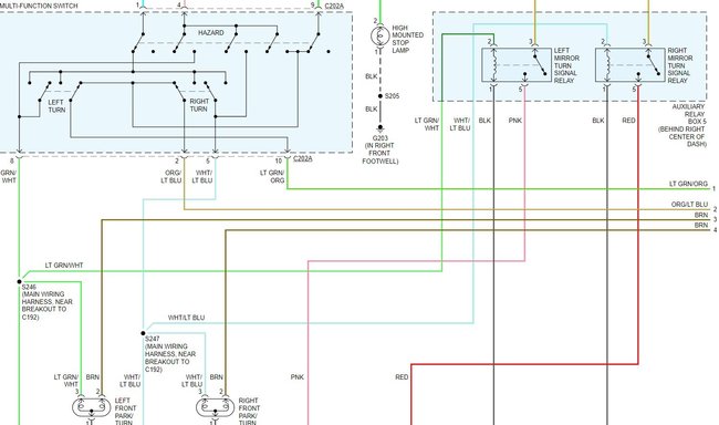 The easiest way appears to be to go to the main junction connection under the hood and disconnect the two turn signal feeds and connect them to the running light circuit. The turn signals in the mirrors are fed through relays so they wouldn't add any real load. Find the wiring junction in the left rear corner of the engine bay and find connector 192. See the attached image. Near that connector you need to find the two wires that come from the harness to the relays from splices 246 and 247. The wire colors are Light Green with a white stripe and White with a blue stripe. The catch is going to be determining which of the 4 wires in that splice are the two feeds as there will be 4 wires that are the same color in each splice. One is the feed from the turn signal flasher, another goes to the turn signal indicator in the dash, the third goes to the turn signal and the last goes out to the bulbs in the mirrors. You would need to cut the ones that feed to the mirrors, then connect the wires you cut free to one of the Brown wires that feed the regular running lamps. Those can be found in the main harness under the battery junction box area. The reason you need to do it this way is because of the relays that feed the lights. You are using those to turn on the power to the mirrors, the relays are inside the truck and also provide the click sound for turns. Wiring this way, when you turn on the parking lights they would come on. However you might want to look at the local laws about it first, some are picky about where you can have a light on full time. Another issue would possibly be heat, those lamps are built tight and with no ventilation, running them full time could result in the bulb housings or lenses melting from the heat.