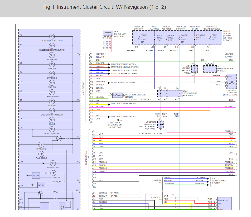 I had to Jump Start my car and since then my car Guages will not operatre. ( Engine coolant temp. Gauge, Tachometer, Speedometer, Fuel Gauge and the Multi Information Display.)