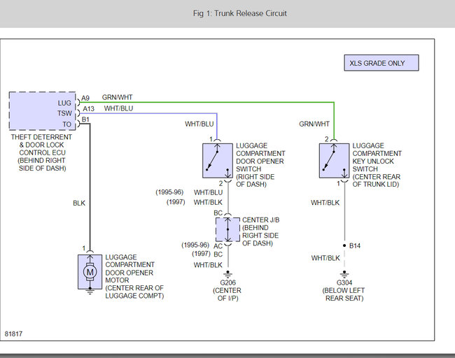 The reason I want to do this is to simplify opening the trunk. To reduce the chances of theft from the trunk due a break-in of the passenger compartment, one must disable the trunk release button on the dashboard by pushing a button in the glove compartment and them locking the glove compartment. Unfortunately, pushing this glove compartment button also disables the trunk release button on the wireless remote control. The trunk does not have a key hole. Thus, with the button in the glove compartment set and the glove compartment locked, it's a pain to put the laptop or other valuable item used during a trip into the trunk whenever making a stop.