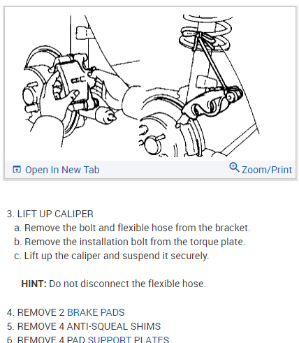 HINT: Do not disconnect the flexible hose from the caliper.