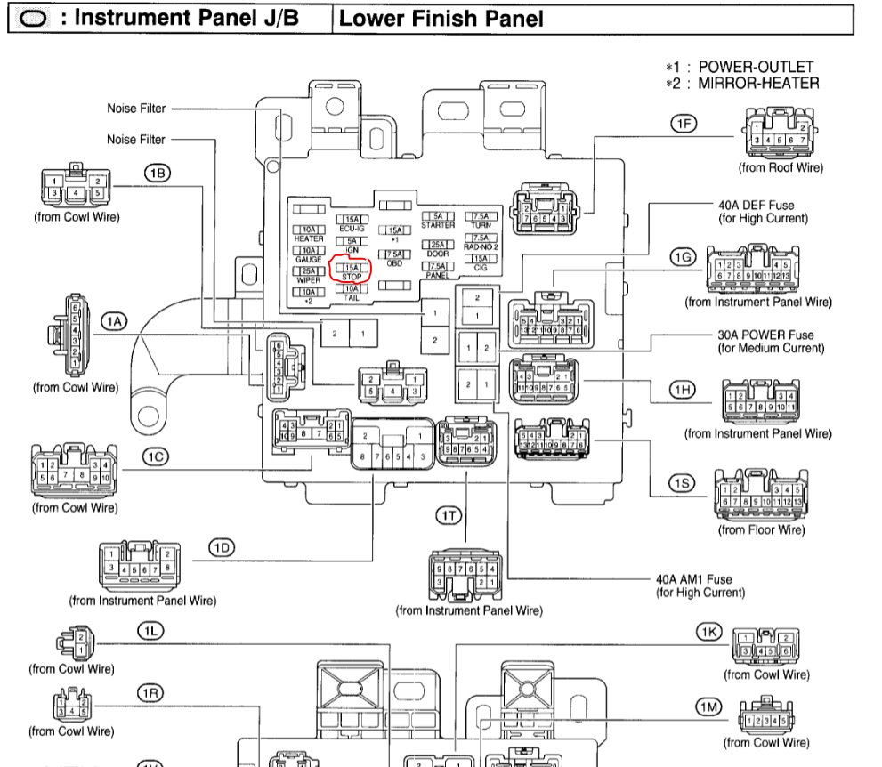 However, the brake does lights have a 15A fuse located in the fuse box under the dash (see diagram).