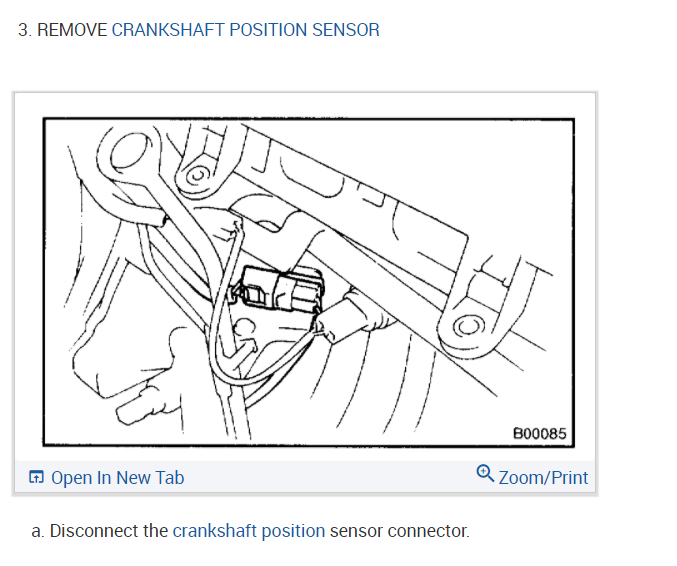 It sounds like the crankshaft angle sensor is out. To be sure lets go over this guide. Here is the location of the sensor and how you change it out in the diagrams below: