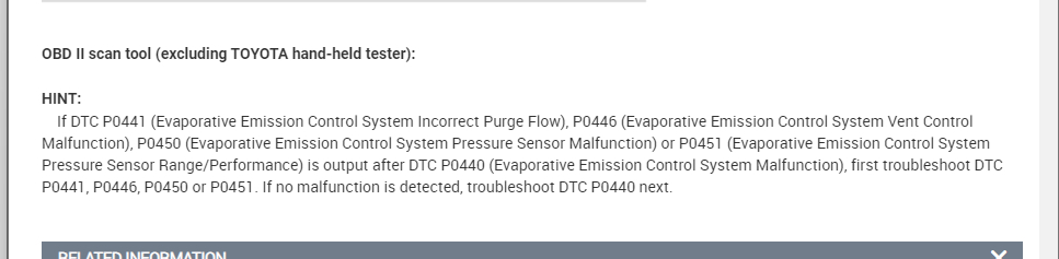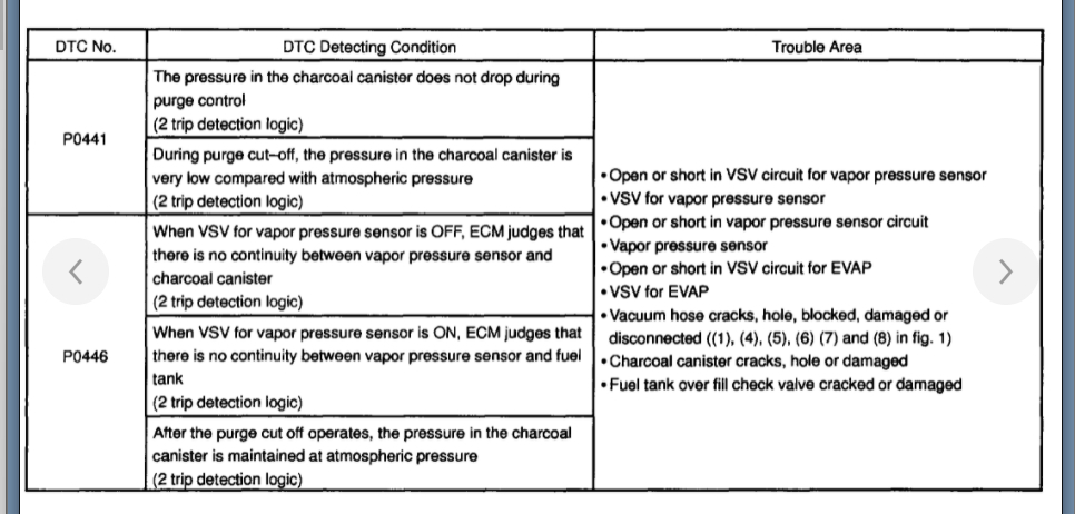 I'm getting code P0441 and wondering which component to replace first the VSV for EVAP, VSV for Vapor Pressure Sensor or the Vapor Pressure Sensor itself. If I just start replacing parts which one is more likely to fix it. Thank You!