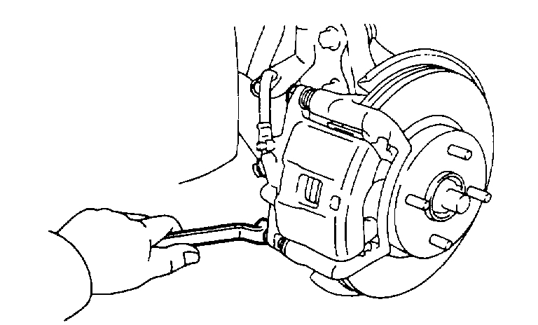 HINT: Do not disconnect the flexible hose from the caliper.