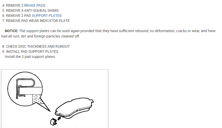 NOTICE: The support plates can be used again provided that they have sufficient rebound, no deformation, cracks or wear, and have had all rust, dirt and foreign particles cleaned off.