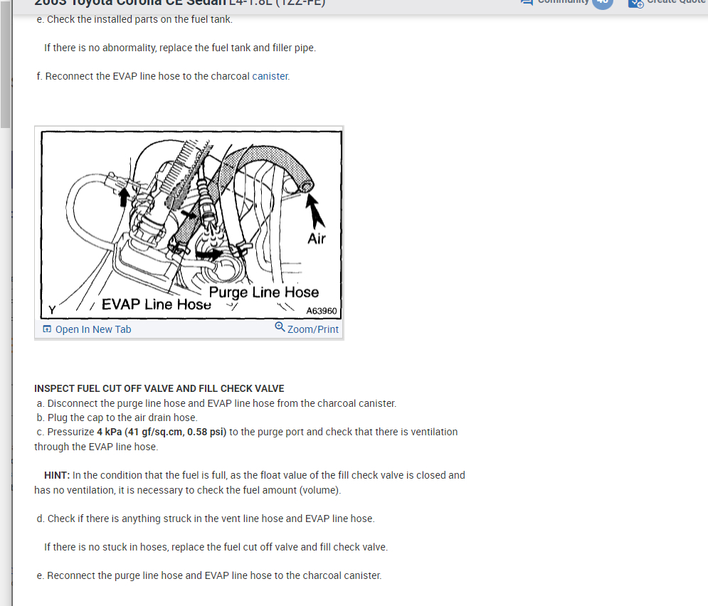 Have not been able to (easily) put gas in my car for the last 5 fill ups. The gas handle keeps going off - no matter the position of the handle and the slowest flow. Then yesterday the tank would not take gas - it overflowed like it was full (and it is not). I have been told it could be a bad overflow valve or the overflow line is kinked. Where (exactly) can I find the overflow line on a 2003 Toyota corolla? And what do you think the problem is?