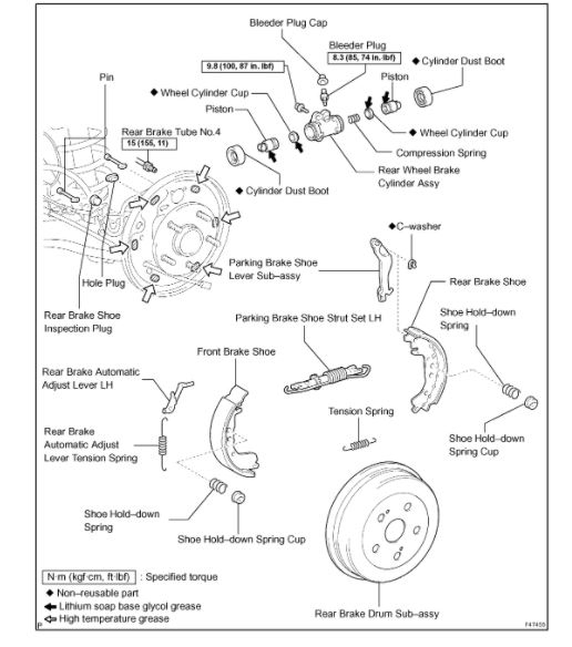 a. Using SST, remove the cup, shoe hold-down spring and pin.