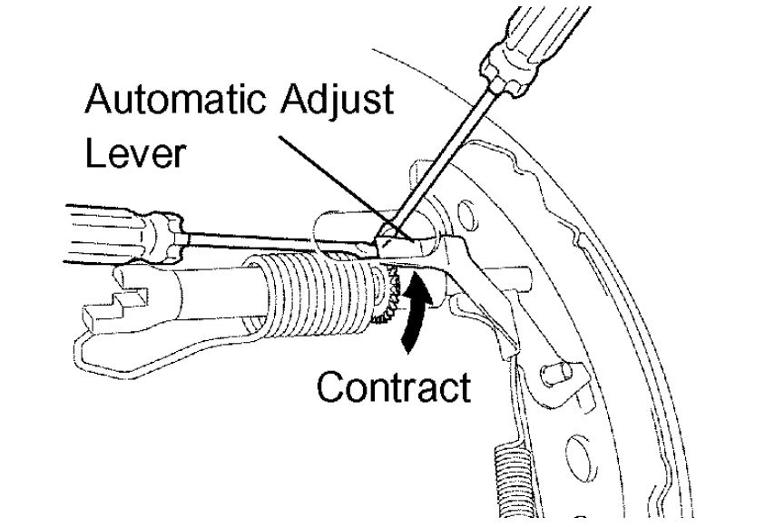 d. Using another screwdriver, contract the brake shoe adjuster by turning the adjusting bolt.