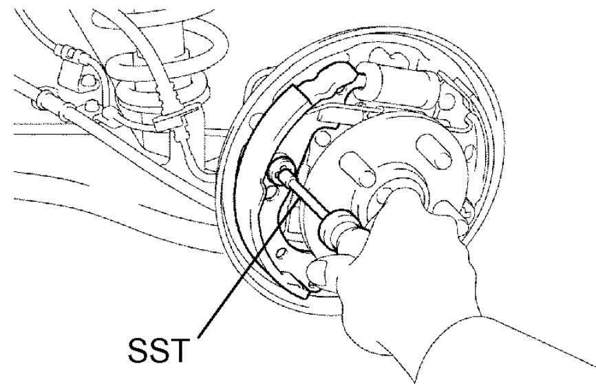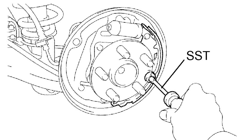 HINT: If the brake drum cannot be removed easily, do the following steps.