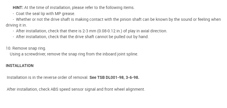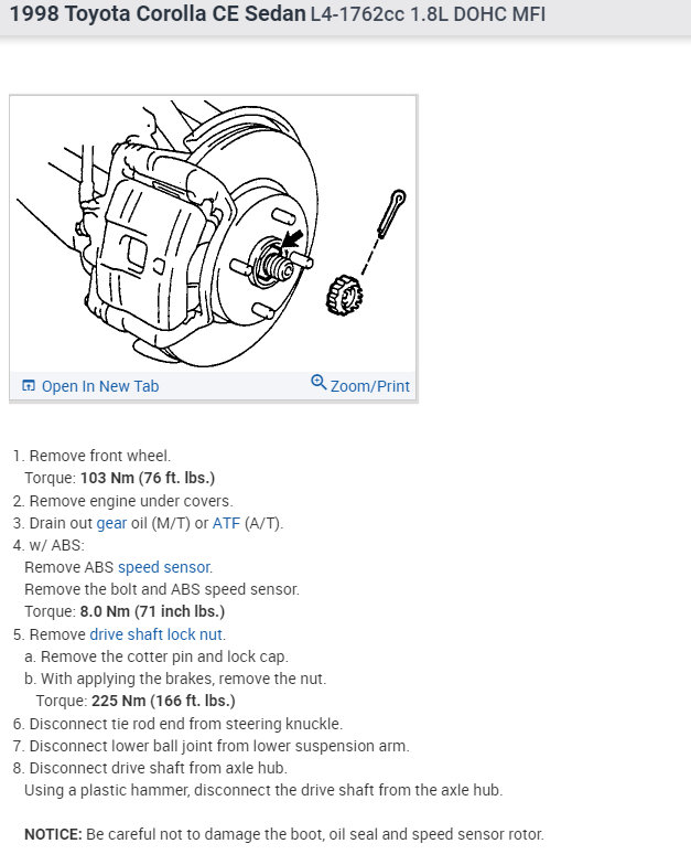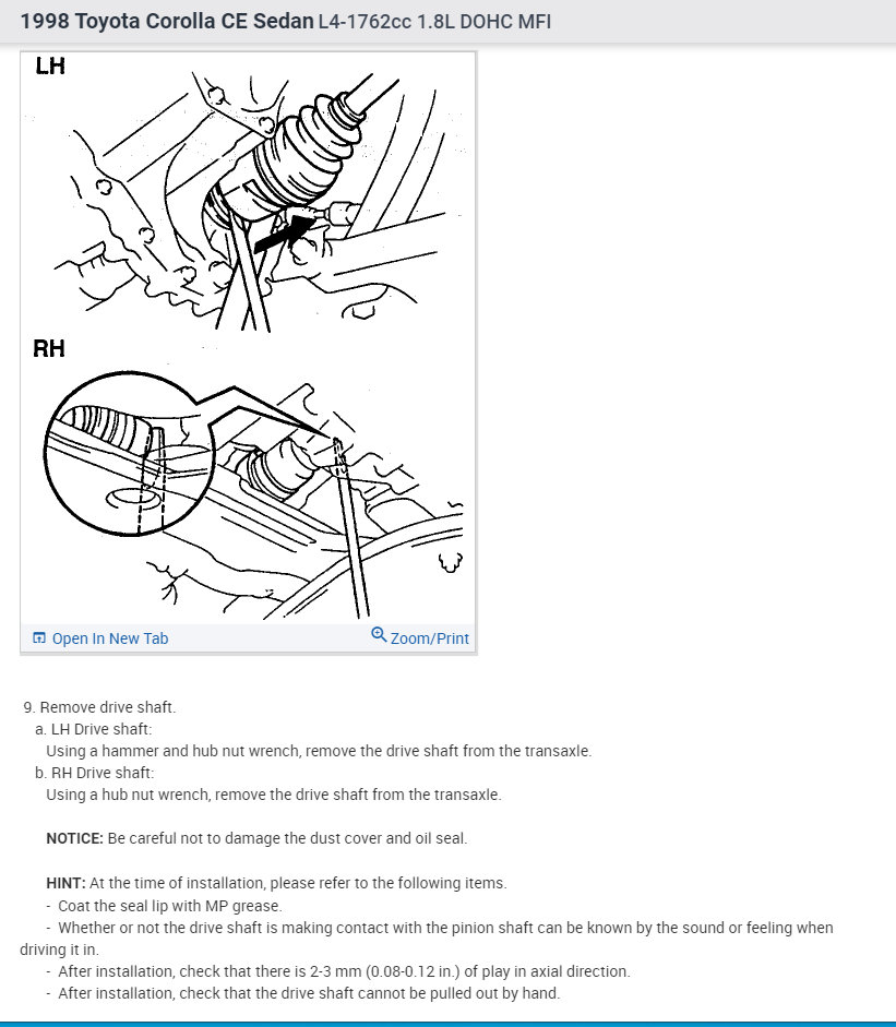Toyota, Corolla, 1998, 100,000 How do you remove the inner end of cv axle?