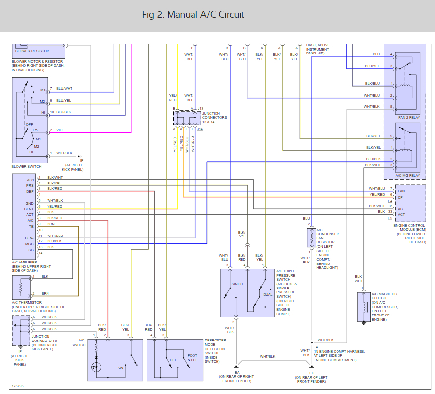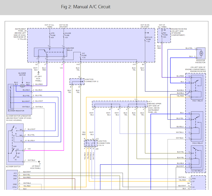 This sounds like you have an air conditioner amplifier that is not working right here are diagrams so you can see how the system works and the amplifier location.