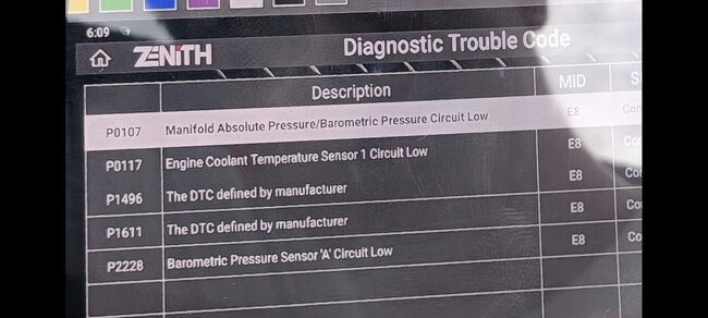 p0107 manifold absolute pressure/barometer pressure circuit low
