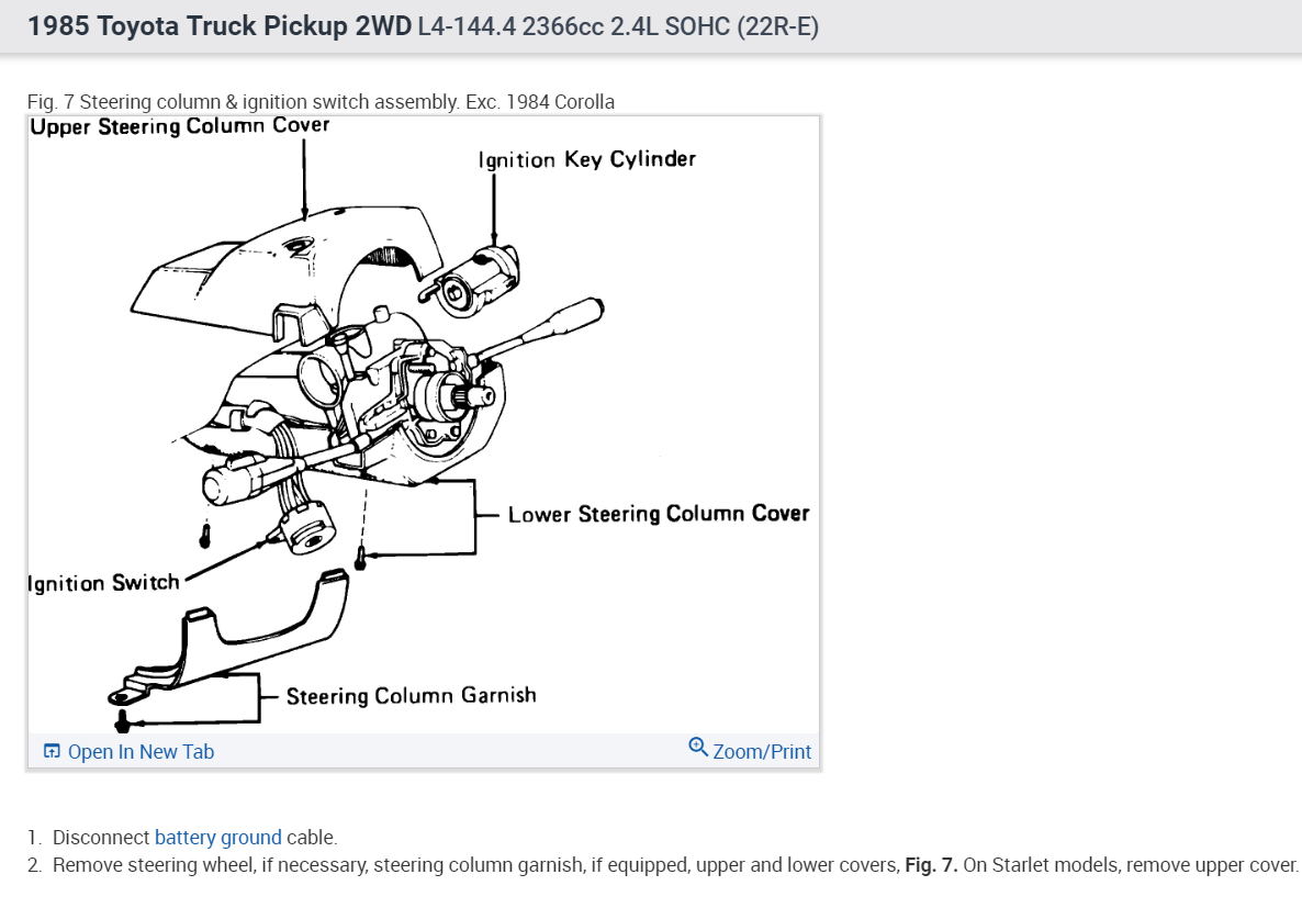 2. Remove steering wheel, if necessary, steering column garnish, if equipped, upper and lower covers, Fig. 7. On Starlet models, remove upper cover.