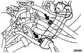 Remove the 2 nuts, and disconnect the engine wire protector from the water inlet and cylinder head.