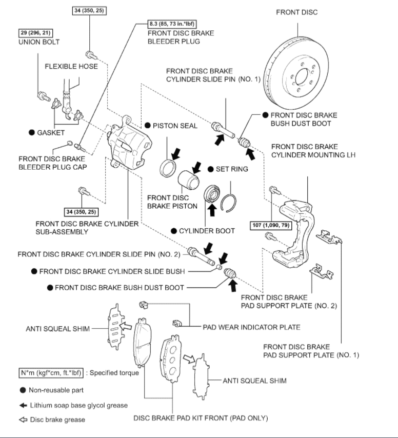 - After installation, fill the brake reservoir with brake fluid, bleed the brake system.