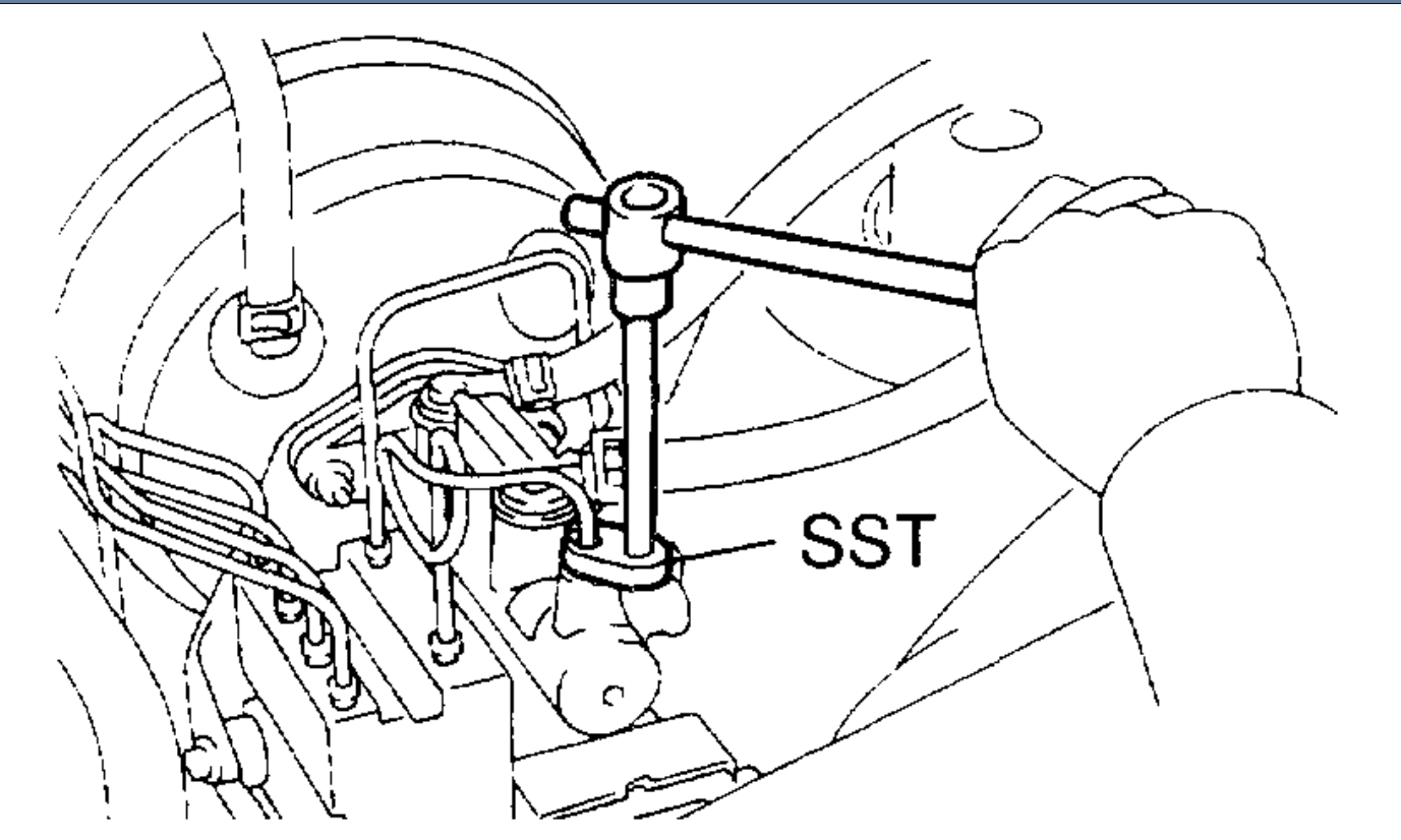 Using SST, disconnect the 2 brake lines from the master cylinder.