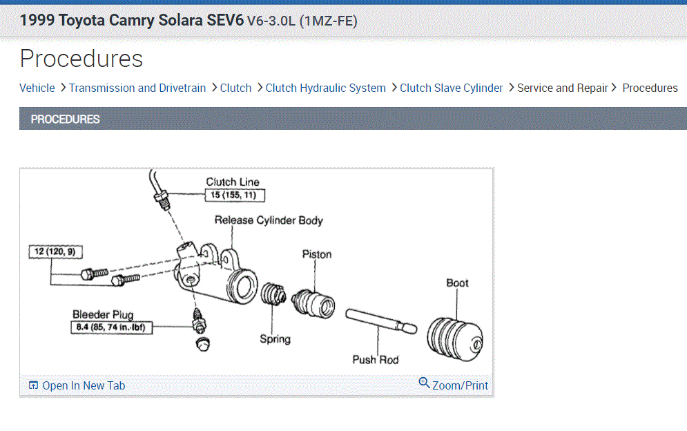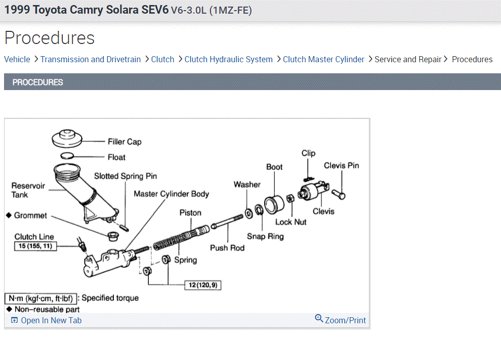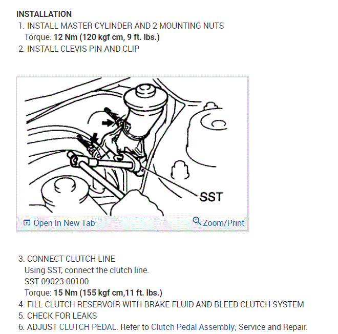 The clutch system on this vehicle is hydraulic. The primary components are a clutch master cylinder and a slave cylinder.