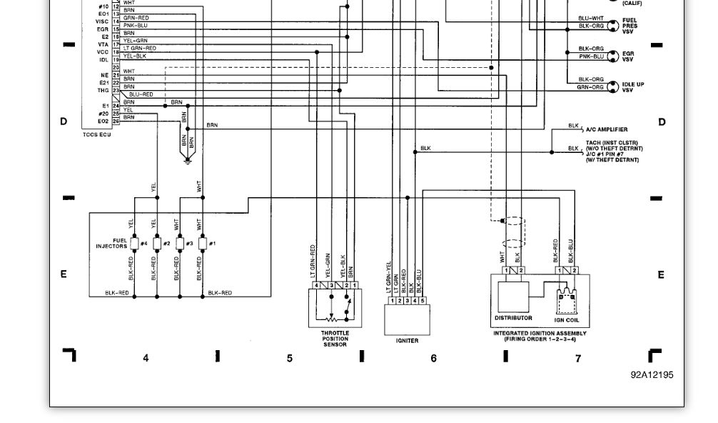 In 1991 Tercel's did not have actual crankshaft position sensors. Engine speed is sensed via pick-up coils in the distributor. This information is sent to the ECU and used to determine crankshaft position and engine rpm. Crankshaft position is input through terminal G and engine rpm is input through terminal NE of the ECU.