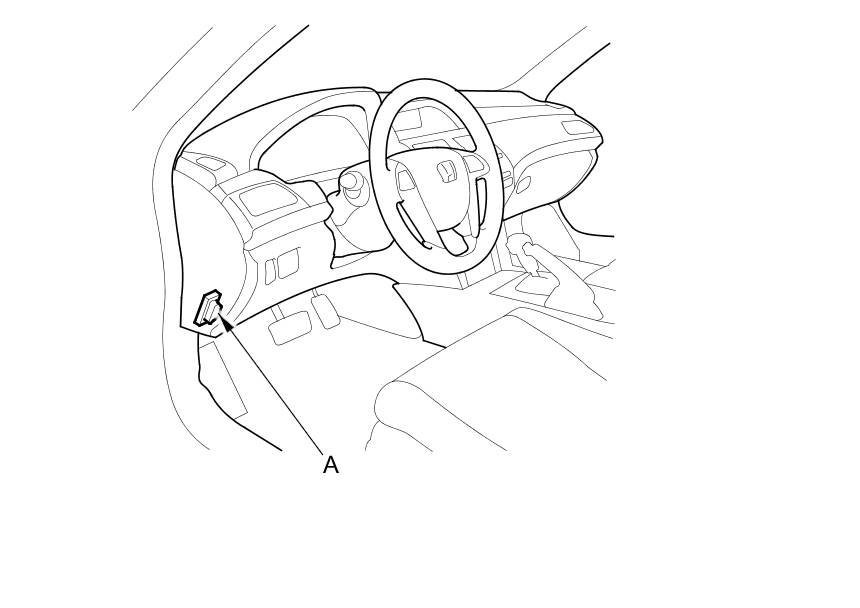 1. With the ignition switch in LOCK (0), connect the HDS to the data link connector (DLC) (A) located under the driver's side of the dashboard.