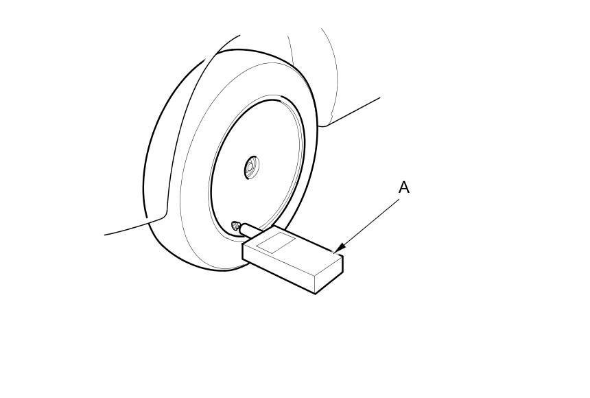 6. Hold the TPMS tool (A) near the valve stem of one wheel, and activate the tire pressure sensor.