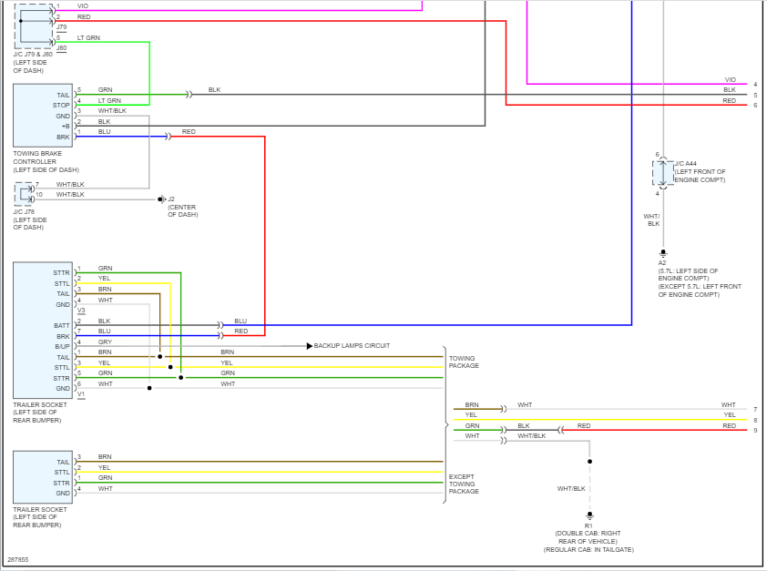I am trying to replace a 4 pin trailer wiring harness with a new 7 pin. The new harness has 2 connectors, 1 with 5 wires and another with 2 wires (black and blue). The 5 wire end plugs into the existing receptacle but there is nowhere to connect the 2 wire connector. How do I connect it?