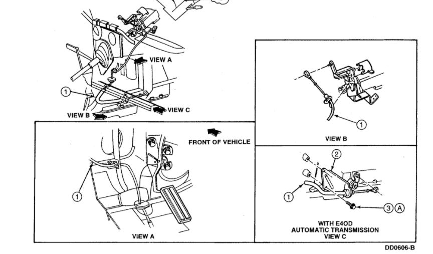 8. Snap cable plastic terminal to shift control selector lever pivot ball on steering column.