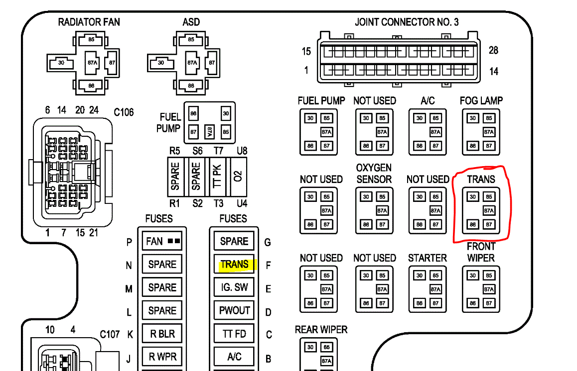 Next, the codes related to the transmission are specific to a voltage issue. Check the transmission fuse and relay located in the power distribution box under the hood. See pics 1 and 2. I can't be sure, but I suspect the issue is the relay.