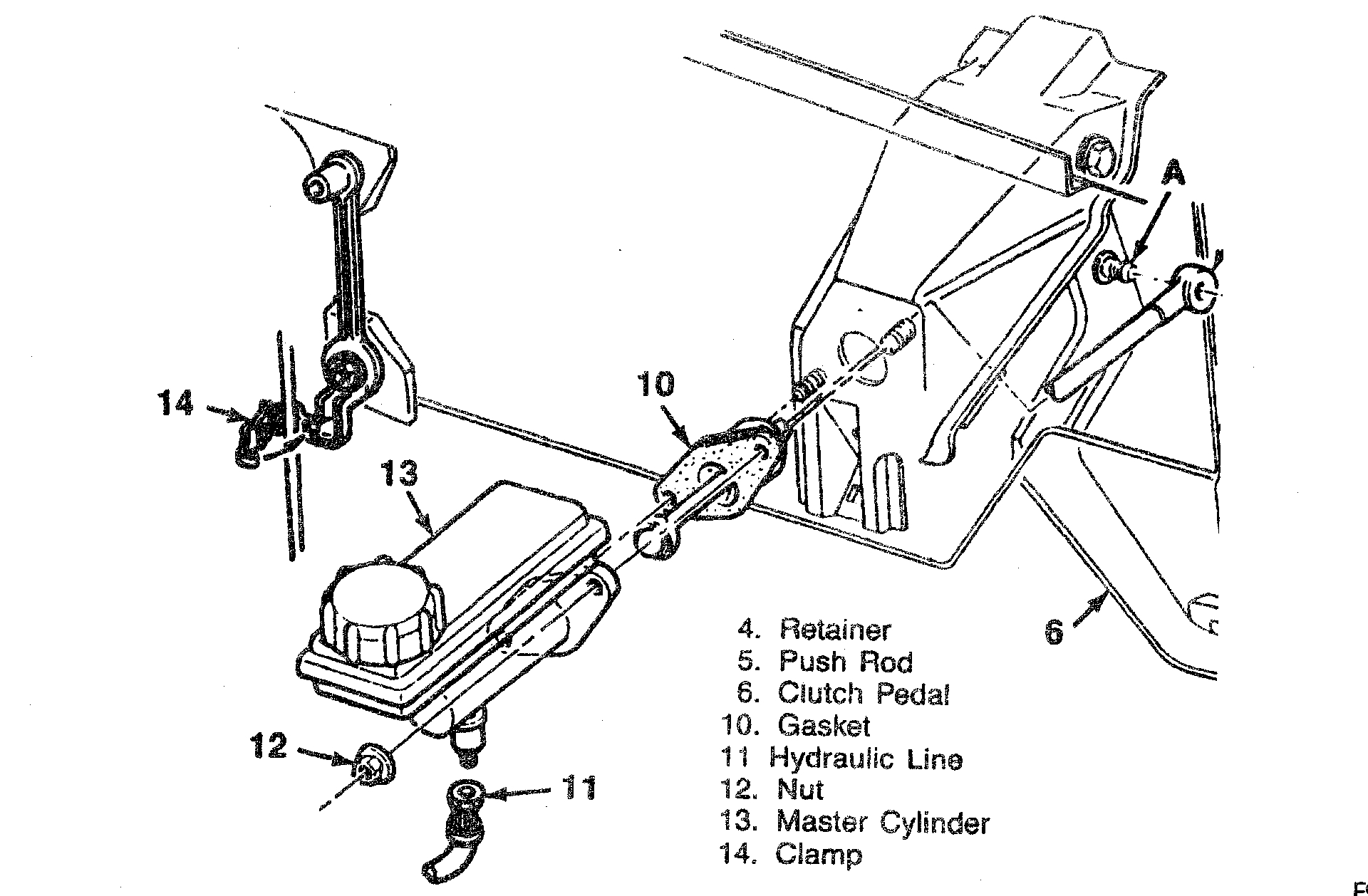 3. Hold the clutch pedal down, open the bleeder screw (32) to let air and fluid escape, and close the bleeder screw (32). Let the clutch pedal up.
