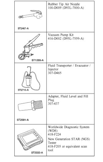 4. NOTE: Prior to filling the special tool with clean transmission fluid, make sure that the canister is clean.