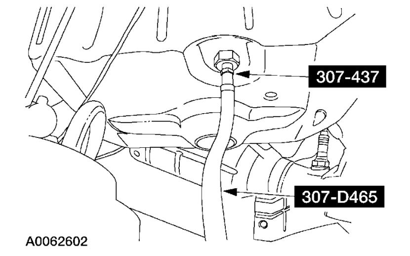 7. Apply a maximum of 206.85 kPa (30 psi) to the open end of the vacuum/pressure hose from the special tool. Fluid will immediately start flowing out of the special tool into the transmission fluid pan.