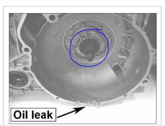 The only thing I can think of is the flywheel you are seeing. It is behind the bell housing. There is a front pump seal on the transmission that could be leaking. That would be between the engine and transmission and is would most likely be leaking from the bottom of the housing. I attached a pic of the bell housing and circled the seal I'm referring to and there is an arrow showing where it may be leaking from.