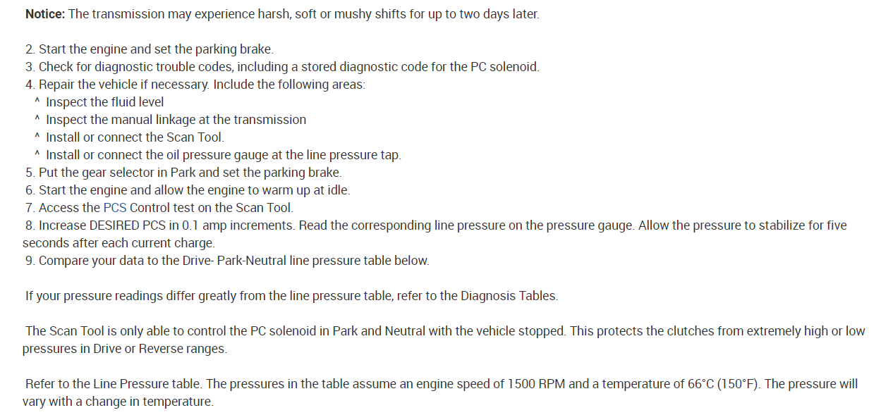 Notice: The transmission may experience harsh, soft or mushy shifts for up to two days later.