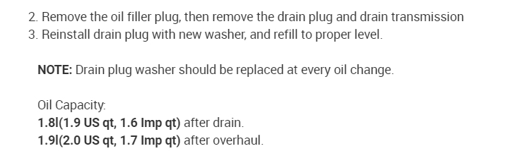 Accord, Prelude .................... 2.4 liters 5.0 pints