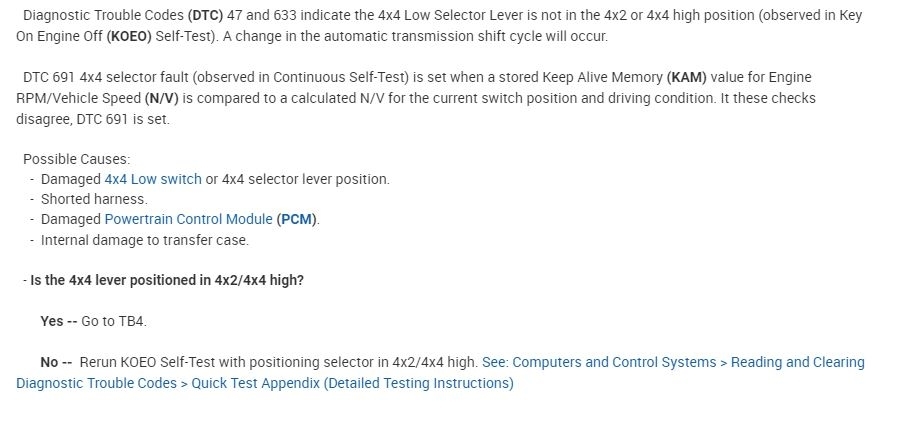 If you did a key on engine off test and the 4 wheel switch was in 4 wheel drive, that would set the code.