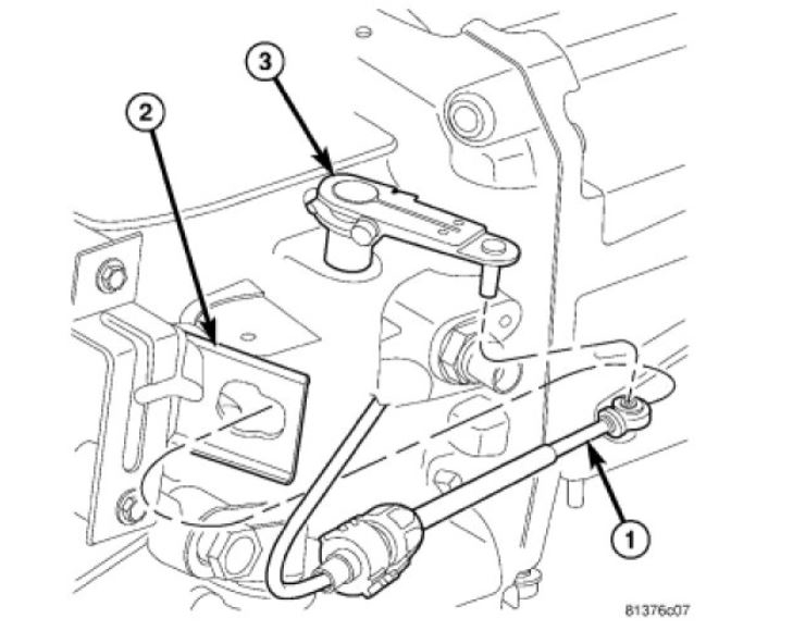 12. Disconnect the gearshift cable (1) from the transmission manual valve lever (3).