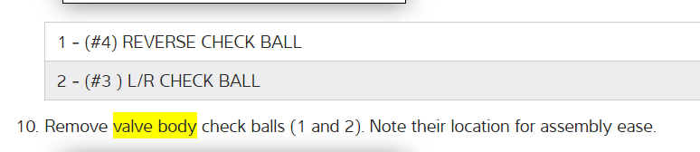 I need to get the engine size from you as it makes a difference as to what transmission your vehicle has. We will get you detailed disassembly and assembly instructions including where the check balls go,