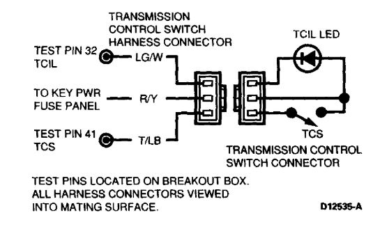 CAUTION: Perform the line pressure test prior to the stall speed test. If line pressure is low at stall, do not perform stall speed test, as transmission damage will occur. Do not allow engine to run at Wide Open Throttle (WOT) for more than 5 seconds.