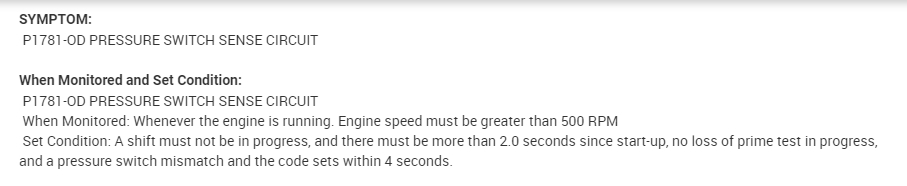 The code is specific to the OD pressure switch sensor circuit. What that means is the pressure switch is open or closed at the wrong time in a given gear or shift.