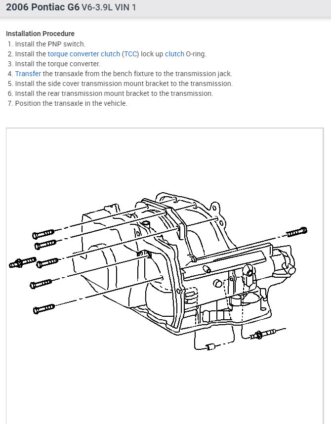 See attached for the transmission replacement procedure, for the 4T45-E transmission.