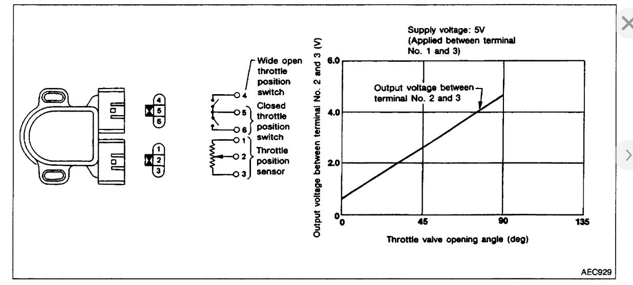 Idle position of the throttle valve is determined by the ECM receiving the signal from the throttle position sensor. This sensor controls engine operation such as fuel cut. On the other hand, the "Wide open and closed throttle position switch", which is built into the throttle position sensor unit, is not used for engine control.