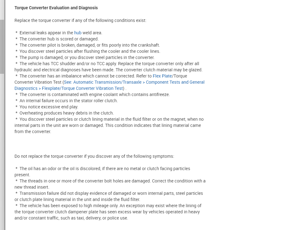 If this is the case, then we need to suspect we have an issue with the torque converter.