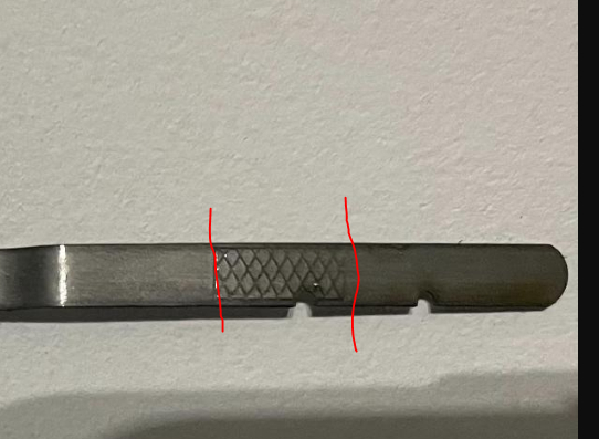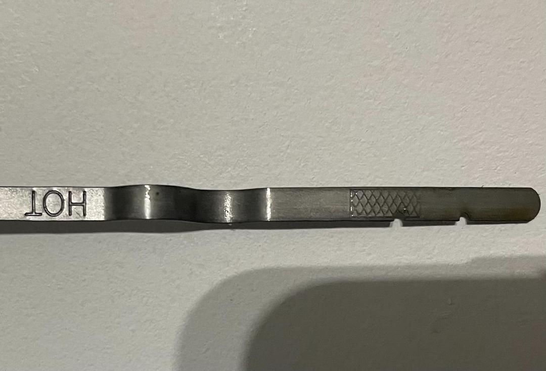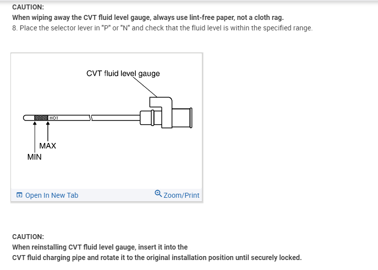 I am trying to verify the transmission fluid level on my son's car listed above. However, on the dipstick, there is only the crosshatch mark toward the bottom of the dipstick, and the word "HOT" above two curvatures in the stick. Currently, it appears to be sitting toward the bottom end of the crosshatch while the car is running. Any suggestions as to where exactly to look to ensure that it has enough fluid? Pic attached. Thanks in advance.