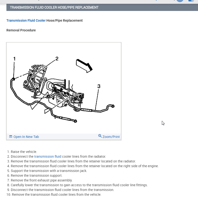 I looked up the cost of the transmission coolant line itself and it seems pretty inexpensive but I don't want to get myself involved in anything I can't handle with such a high mileage vehicle and getting in over my head. It's night time now but tomorrow I can add some photos to make sure it's the transmission coolant line I'm looking at.