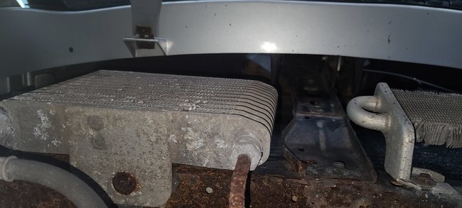 I need some help identifying what these two coolers are, the photo might be side ways. But I took the photo from under the truck facing up so the one that's really damaged is the driver's side. I'm not sure what they are whether Transmission, A/C?