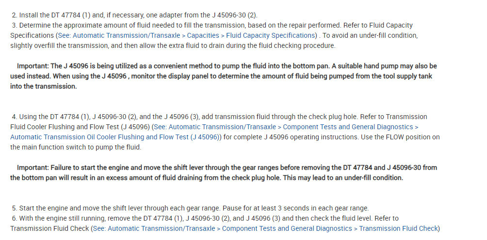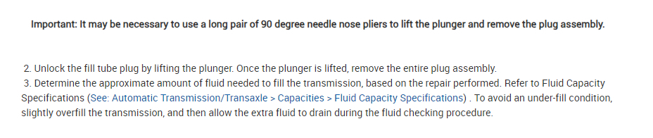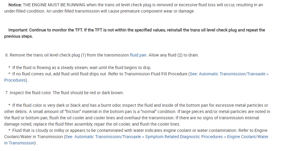 There are a couple ways to check and add fluid. I attached both of them below for you. Note that when checking the level, the engine needs to be running, in park, level, and at operating temperature. If you remove the pan level check with the engine off, you will lose fluid. It must be running when this is opened.