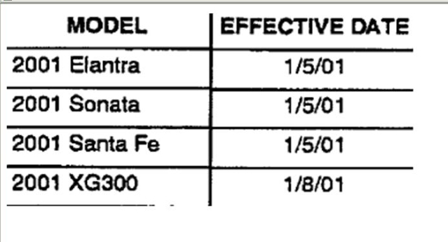 Hyundai has deleted the external oil filter (P/N 46322-39000) on all Elantra, Sonata, Santa Fe, and XG300 transaxles effective with the production dates listed below. These transaxles are equipped with an internal oil filter that needs to be changed only during transaxle overhaul.