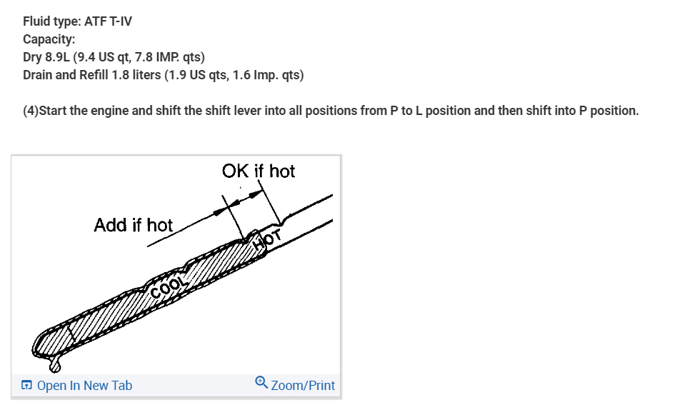 Nice work, this will help the transmission last for many miles. here is a generic guide to help you see what you are in for with the instructions for your car in the diagrams below. Also, I have included the fluid type as well.