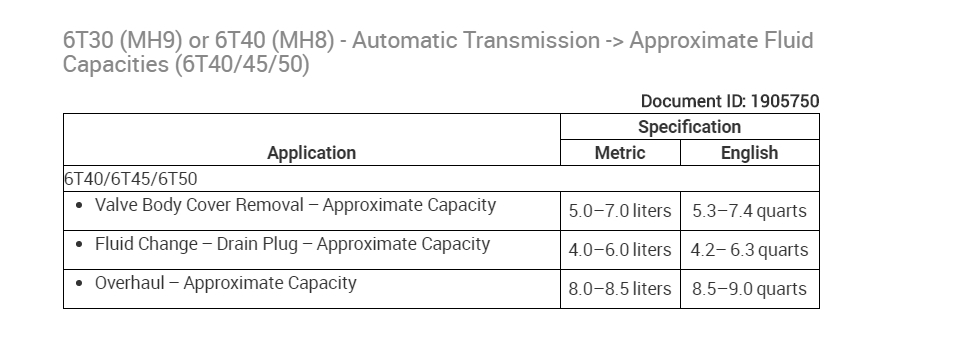 I need to know the capacity of the transmission. I want to change the transmission fluid.