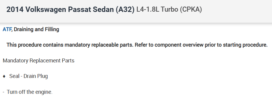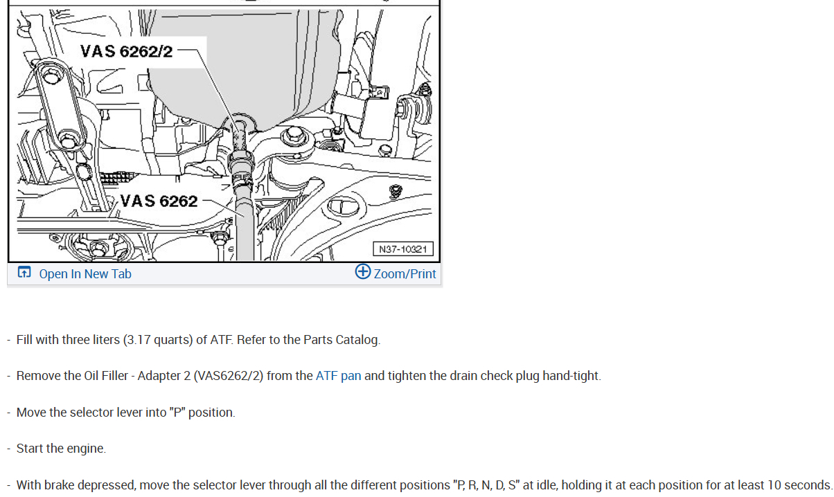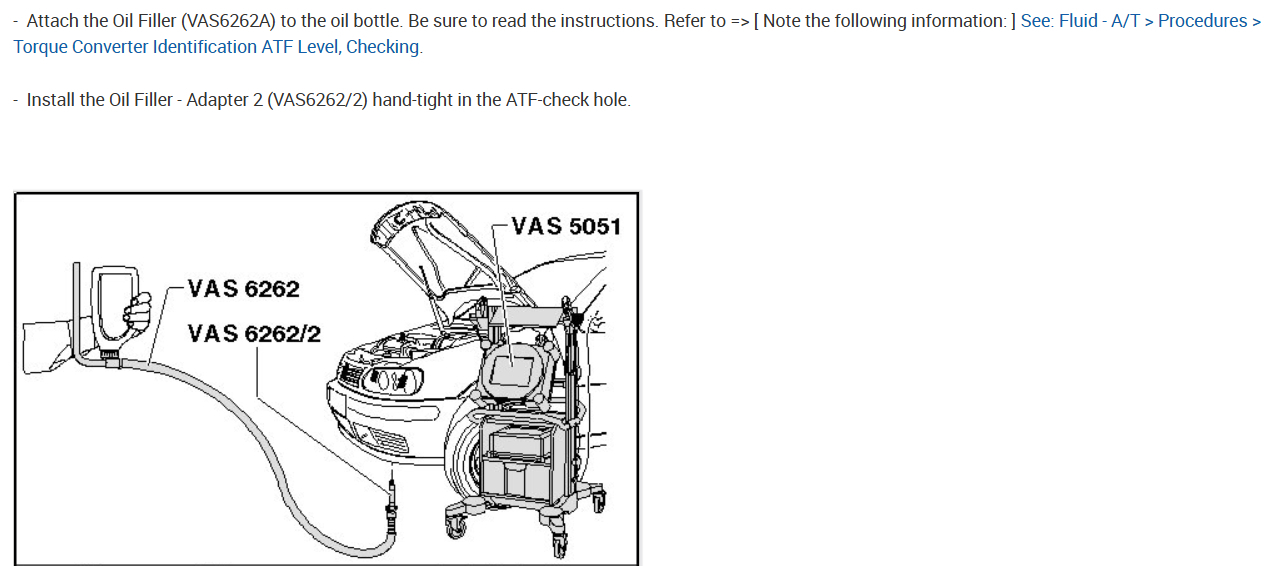 Notes: Use only genuine or VW-approved ATF to prevent transmission damage.
