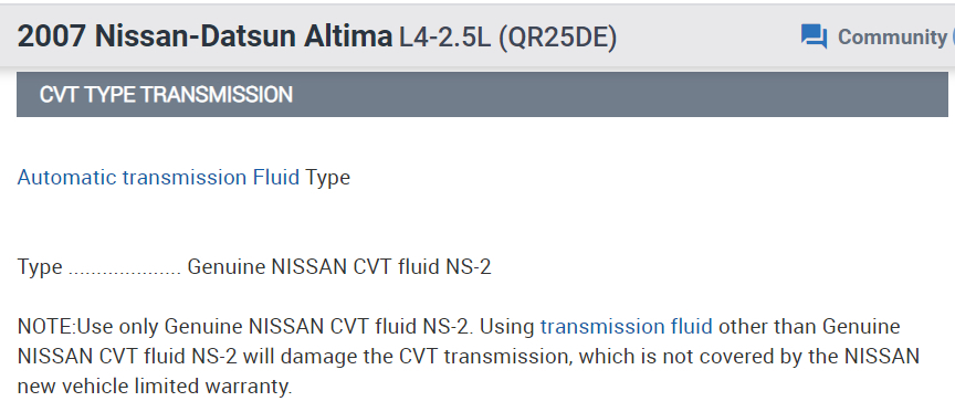 I've attached picture steps below on how to service the transmission for your car. The first picture shows the Nissan dealer cvt - continuously variable transmission type fluid that is required. The picture you attached below showing Valvoline brand looks to be cvt transmission suitable. Hope this helps and thanks for using 2CarPros.